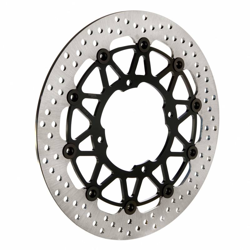 Designed specifically for enthusiasts of this discipline, the Brembo 320 mm Motard Disc consists in a thermally treated steel rotor (capable of withstanding extreme thermo-mechanical stress) connected to a billet aluminium alloy housing through the tried and true round bushing mechanism. All assembled by hand.