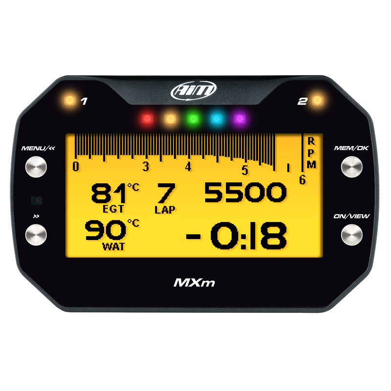 The Aim MXm Motorcycle Data Logging Dash With GPS provides all the info needed by racers. It samples and shows key info like speed, lap times, RPM, gears, it has a 9 axis inertial platform, multiple math channels and much more. Its strengths are the compactness, which makes MXm perfect to be fit into any kind of motorcycle and its plug-and-play usage is complete but simple. The MXm is the perfect device for both Pro and Amateur racers.