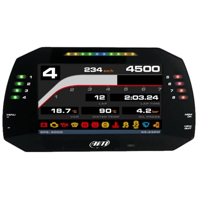The GPS08 Module (included in the kit) connected via CAN makes lap time calculation and track position analysis very easy. Each Aim memory stores more than 200 world tracks start/finish line coordinates. As soon the dash/logger is switched on, the GPS08 Module will locate its position, identify track-line coordinates and start immediately sampling lap and split time.