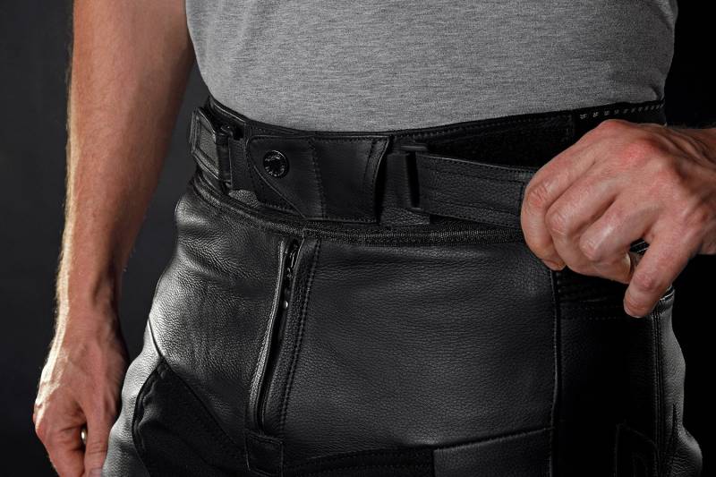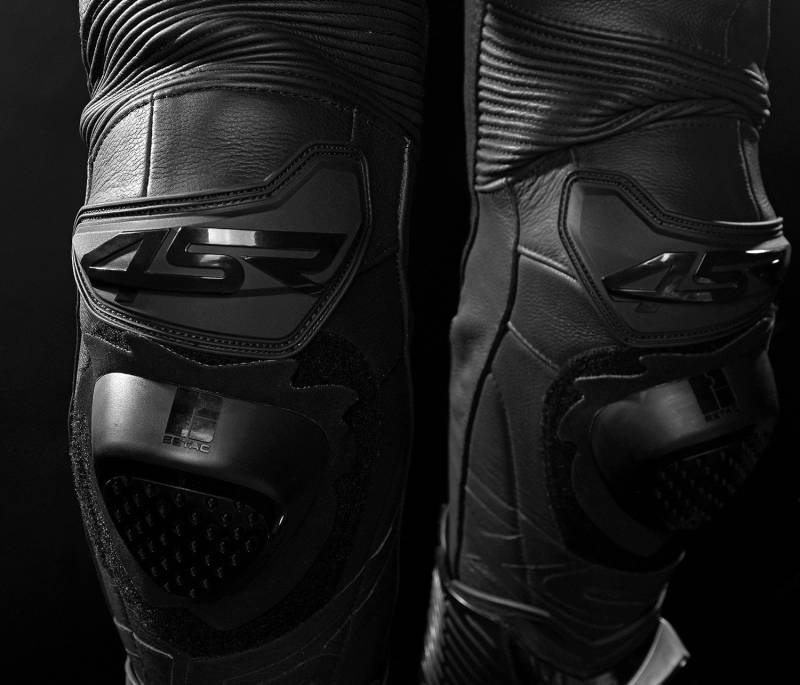 External PU slider protectors on knees, same like on 1PC racing suits, are race proven in BSB Championship. Sports riders with their knee on the tarmac will welcome velcro straps for attaching sliders.