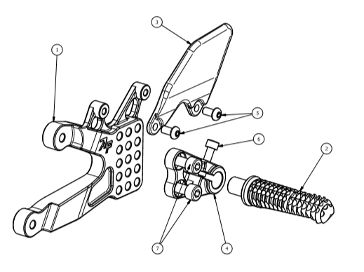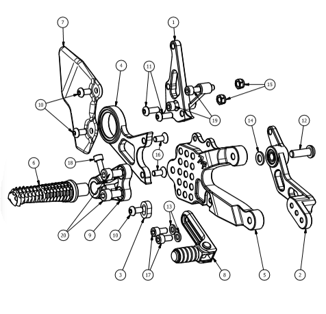ATTACK PERFORMANCE REAR SET KIT WITH SHIFT LEVER, BMW S1000RR, 2015- , BLACK (REPLACEMENT PARTS) 606110BE