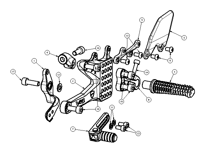 ATTACK PERFORMANCE REAR SET KIT, DUCATI V4, 2018 -, CLEAR (REPLACEMENT PARTS)