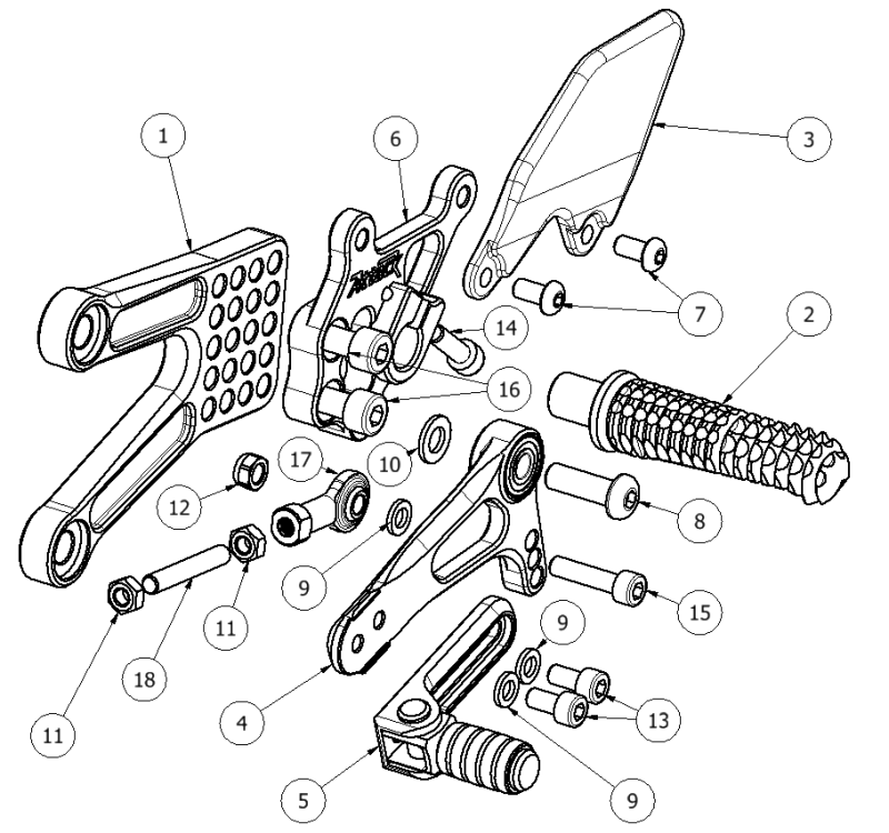 ATTACK PERFORMANCE REAR SET KIT, ZX6R 05- , ZX6R-636 13- , AERO HARD 313110G