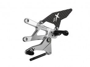 Extreme Components GP EVO rear sets kit for Kawasaki ZX 10 R (2016/2020) (standard shifting) with carbon fiber heel guard (silver) - PED-GP EVO ZX1016B LCD ZX10 16S