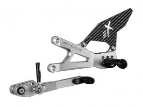 Extreme Components GP EVO rear sets kit for Suzuki GSXR 1000 (2017/2020) (standard and reverse shifting) with carbon fiber heel guard (silver) - PED-GP EVO GSXR1000B