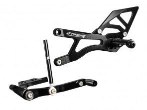 The rearsets are plug and play, arranged for standard and racing shifting.