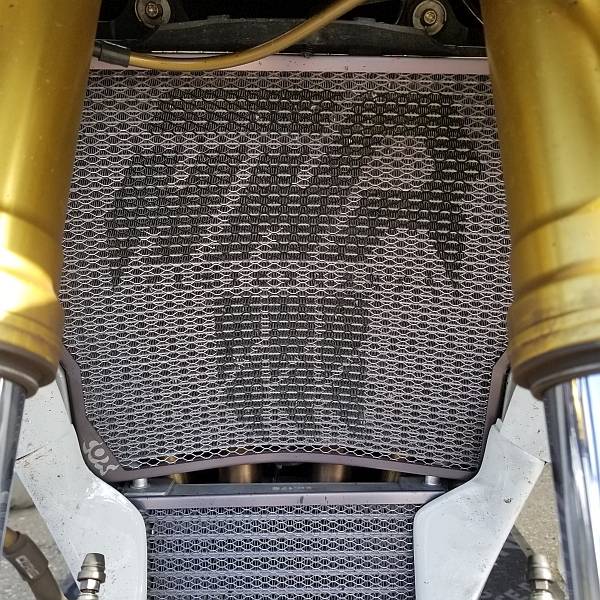 Cox Radiator Guards are engineered so they are manufactured without welding. Frames are cut from a sheet of .060 5051 aluminum. The screen is .034 expanded aluminum. Then they hard anodize every one for a chip-free, tough finish! To mount this guard, Zip tie it to the upper radiator straps and bolt to the lower radiator mount using the existing fastener.