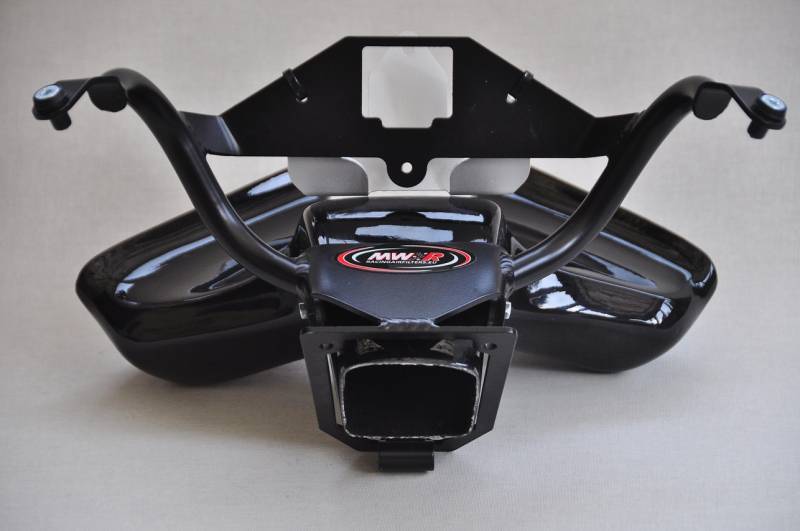 The standard air funnel does not fit correctly around the intake openings, especially when a after market fairing is fitted. This looses valuable ram air to the air box. MWR have developed a new air funnel which fits better and is also bigger than the standard one. The MWR air funnel fits nicely around the air intake openings of the fairing. Adapt the air intake openings from the inside out, make the openings as far as possible to the top fairing, the complete air intake opening will increase ..... a lot. As more air can be rammed into the airbox at high speed and performance will increase. The MWR air funnel is so much bigger you can put the standard size air funnel inside it. The MWR air funnel kit includes the air funnel and the aluminium frame . You need this aluminium frame to install the air funnel because the air funnel will not fit with the standard frame. This kit cannot be installed on the OEM fairings with headlights.