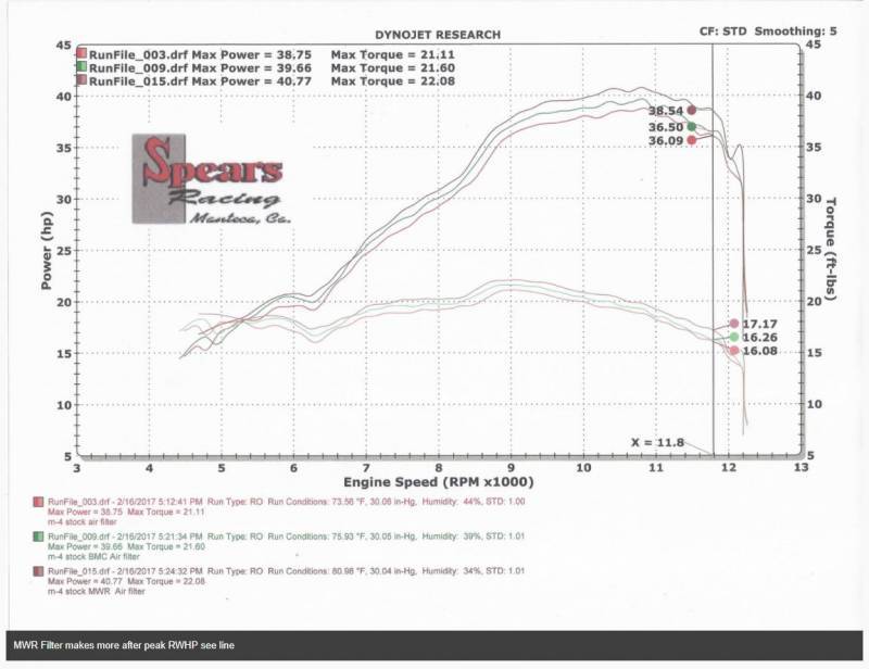 Check out what the top Lightweight bike specialist in the country, Greg Spears from Spears Racing, had to say about the MWR Race filter for the Yamaha R3 after dyno testing!