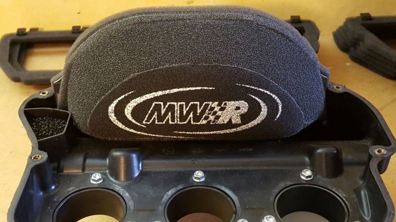 The MWR “R” filter has consistently offered the best power overall compared with all other aftermarket sports filters, but now with the cooperation of several top teams (Kawasaki (KHI), MV Agusta, and other WSBK and MotoGP teams (that due to contractual agreements must remain nameless) they have developed a new style of airfilter called simply WSBK that increases the filter surface enormously. On the F3, it's 3% extra fuel compared to the MWR Racefilter MC-061-12R.