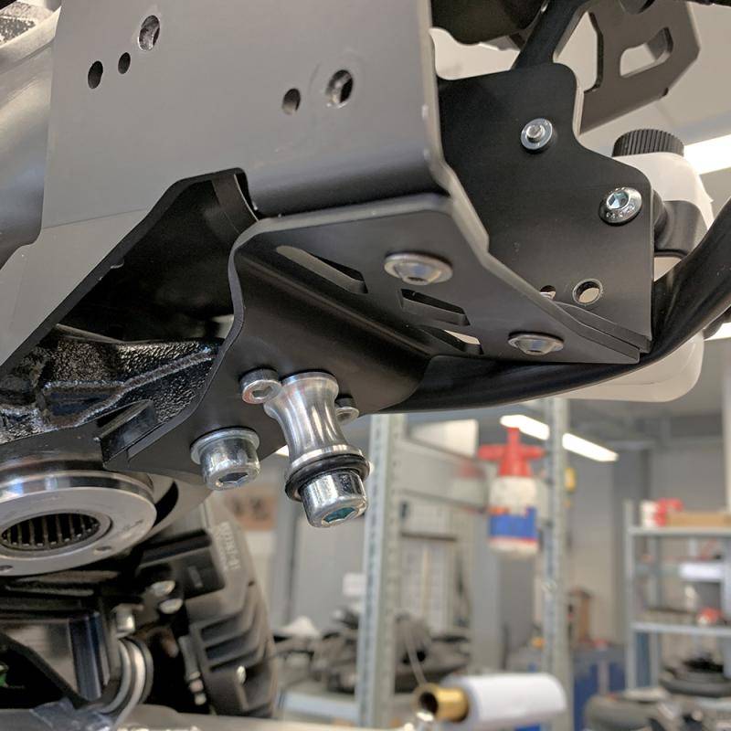 - Aluminium mounting kit to place the Öhlins steering damper on the bottom side of the alpha Racing dashboard and fairing carriers (black version).