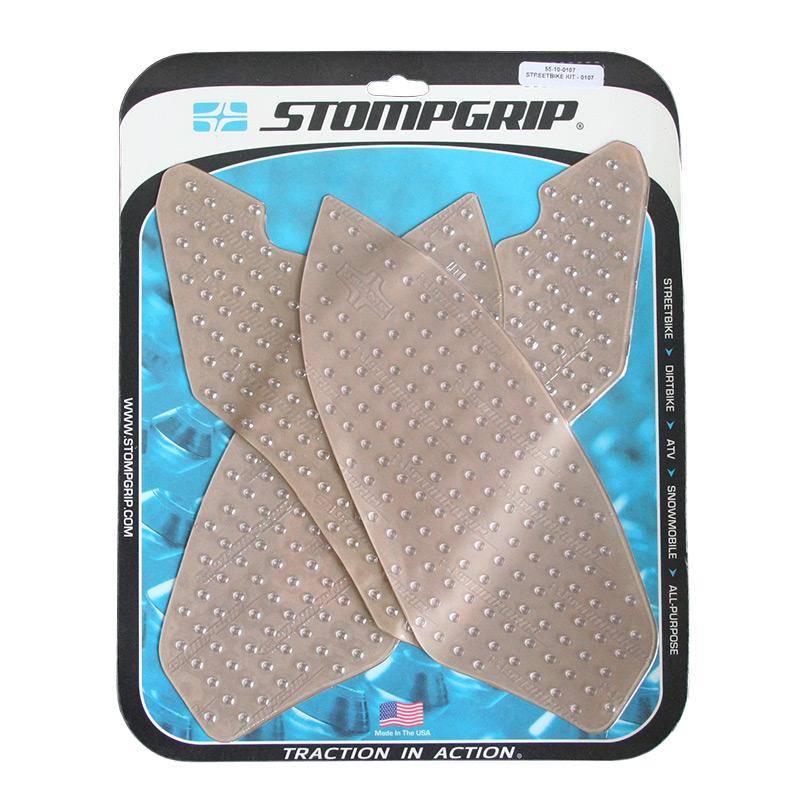 StompGrip traction pad set, BMW S 1000 RR 2015-2018, 4-piece, ultra clear proprietary elastomer material, aggressive volcano profile traction bumps, for better grip on the bike