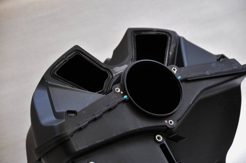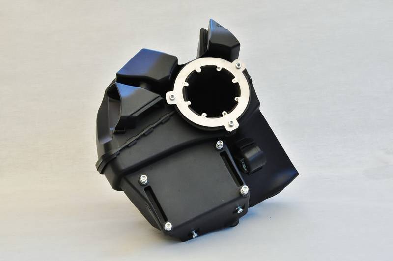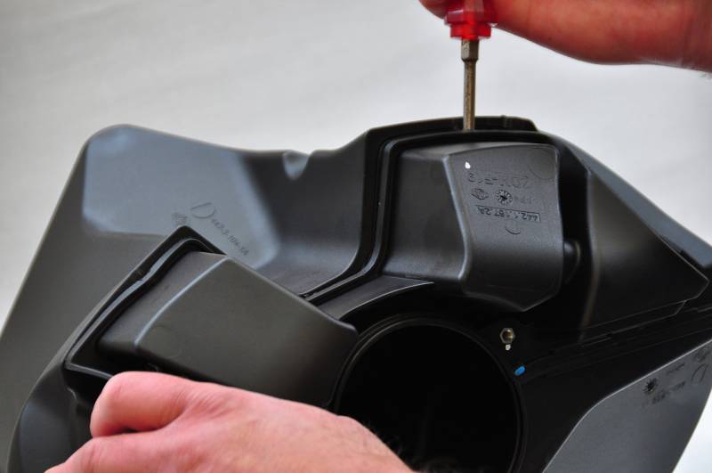 Step 1 - remove your original filter from the airbox. Step 2 - Stick a Screwdriver between the cover and the airbox, and break the cover loose (some force will be required to do this). Extra pic shown of airbox with cover removed. Step 3 - Make the holes (dremel is best, but a knife or hacksaw blade are equally useful for this task). Step 4 - Install the power up kit with the supplied hardware.