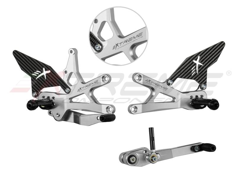 Extreme Components GP EVO Rearsets Kit STD And Reverse Shifting Carbon Fiber Silver Heel (SHIFT ROD FOR QUICKSHIFTER) SUZUKI GSXR 1000 (2017/2022)