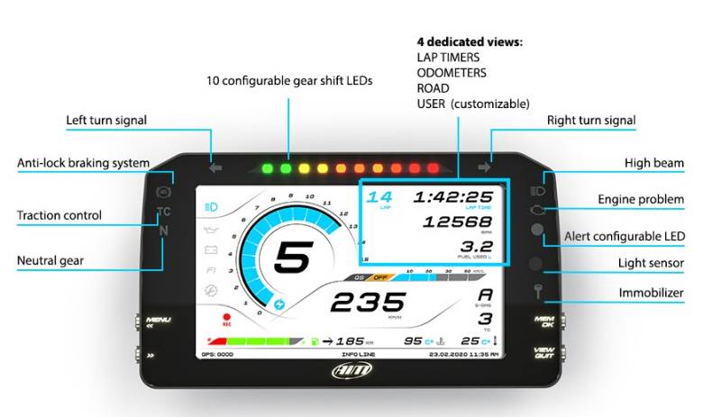 Thanks to its dedicated RACING KIT, the dash turns into a complete datalogger with every feature you may need on track.