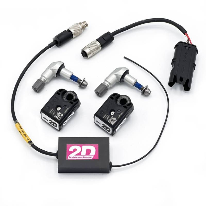 The set contains a telemetry receiver, adapter cable to the M RCK wiring harness and two sensors (incl. valve) for front and rear wheel.