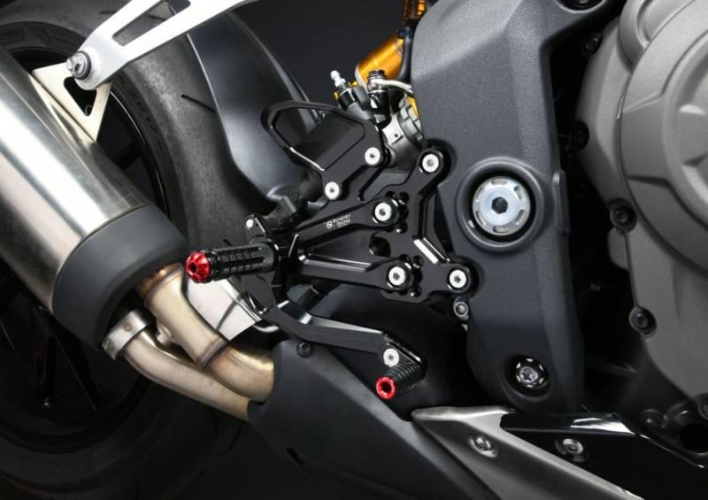 Bonamici Rearsets are made from a single piece of billet aluminium in their factory based in Italy, with a black anodised finish for corrosion resistance and durability. These Rearsets are incredibly high quality. To ensure compatibility, Bonamici laser scan each and every bike they manufacture parts for in order to ensure fitment, after this their parts are fine tuned, tested and validated through various levels of Motorsport meaning you can have complete confidence in these Rearsets to transform your Triumph! These Rearsets allow you to decide where you would like the footpegs to be mounted, featuring multiple different mounting positions you can rest assured that these Rearsets will improve the handling, comfort and appearance of your Speed Triple!