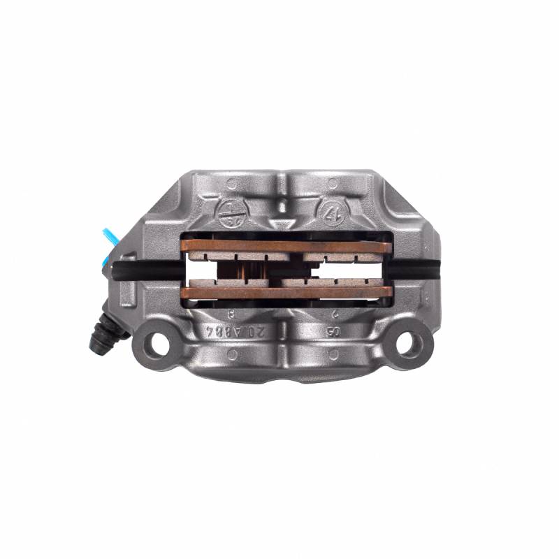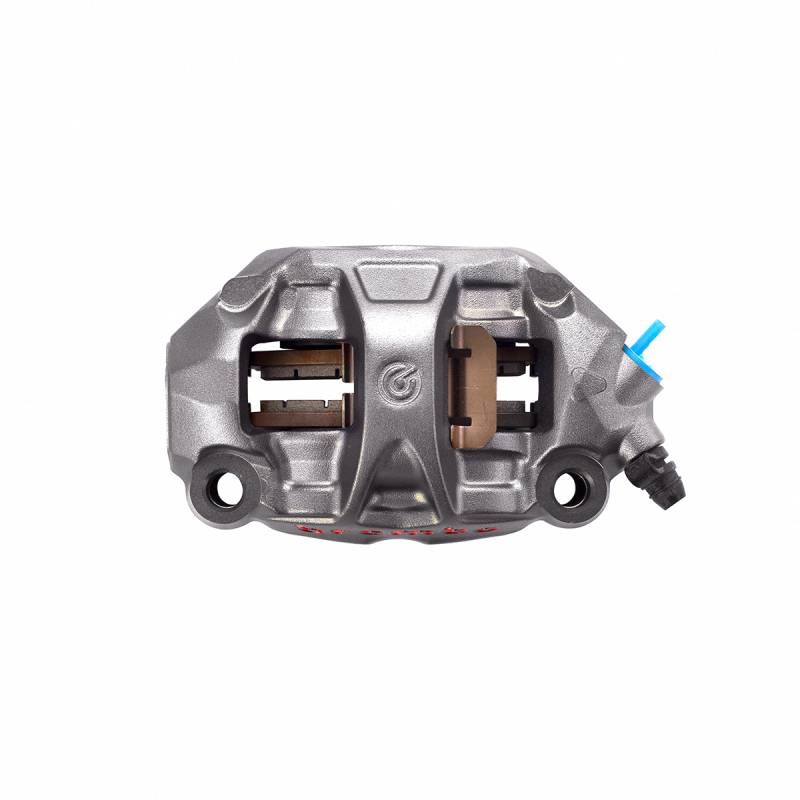 In designing and making this monoblock caliper we decided to give the hydraulics and the caliper body shape particular attention, both of which were the focus of painstaking technical operations to perfect them. With its typically racing design the caliper houses four 30 mm diameter pistons. Thanks to careful refinement, the compact body of the caliper guarantees the excellent characteristics of power and modularity that are so typical of Brembo calipers.