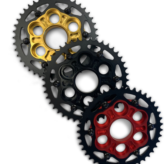 Superlite Quick Change systems enable you to swap the rear sprocket on your single sided swingarm Ducati without removing the rear drive assembly making sprocket and chain adjustments quick and easy. Yes these kits are more expensive than our OEM Direct Replacement kits but once the Quick Change Hub is mounted, all future sprocket changes are roughly half the cost. All components are precision machined to exact tolerances while offering a noticeable weight savings over stock units.